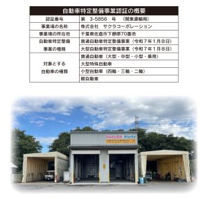 当社は、特定整備事業の関東運輸局長の認証を取得しました。